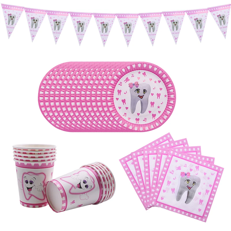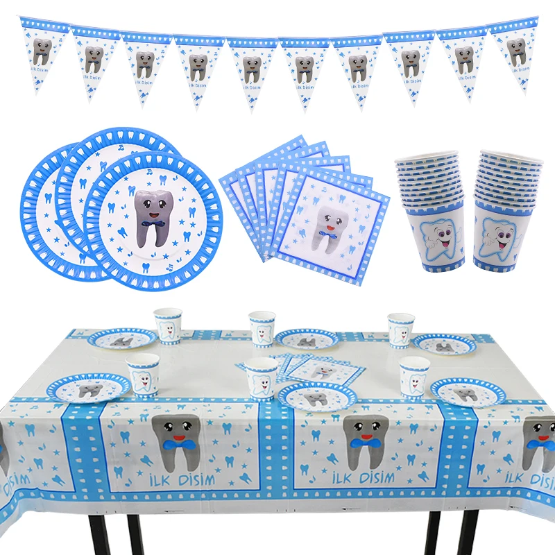 Discount Price 1set Disposable Tableware Paper Plates Cups My First Tooth Theme Party Baby Boy Favor Baby Shower Birthday Party Decor Supplies with Free Worldwide Shipping!
