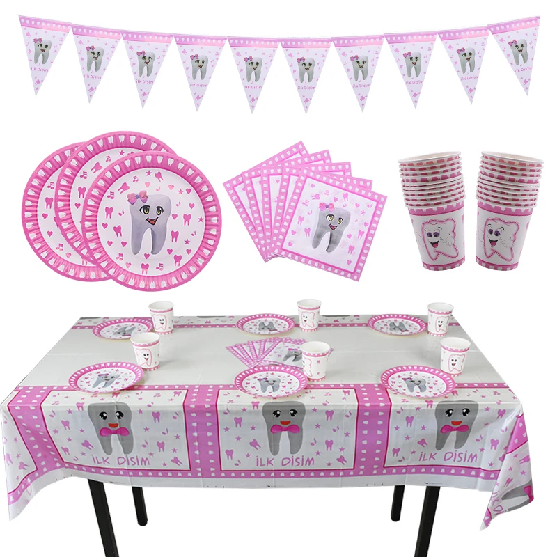 Addition Information of 1set Disposable Tableware Paper Plates Cups My First Tooth Theme Party Baby Boy Favor Baby Shower Birthday Party Decor Supplies