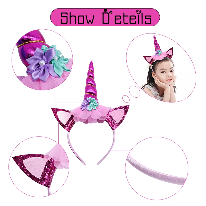 Addition Information of 1Pc Unicorn Headband Sweet Flower Horn Children Headwear Photo Props Unicorn Hair Accessories For Kids Birthday Party Decoration