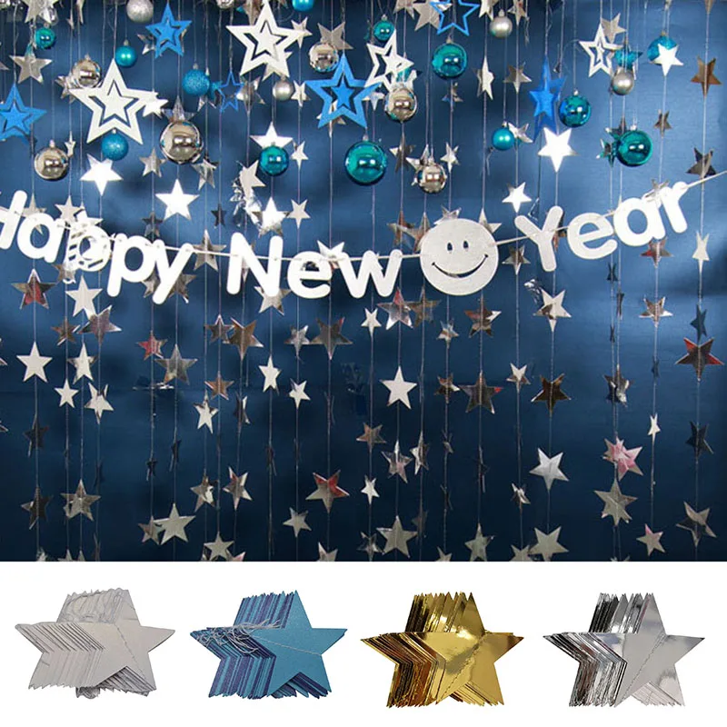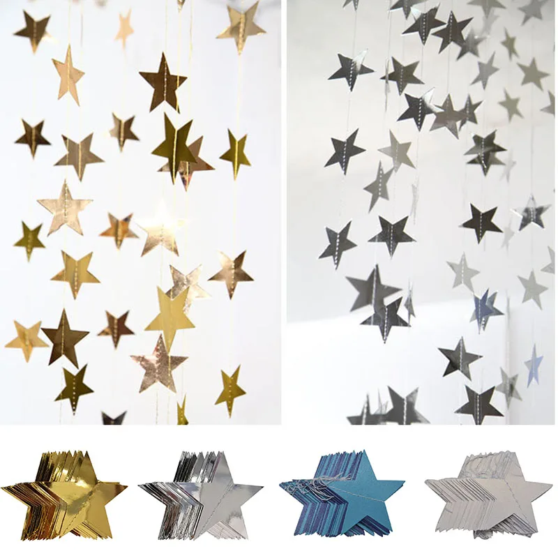 Addition Information of 4m Gold Silver Star Paper Garland Banner Romantic Wedding Hanging Birthday Party Banner Decor Shopping Mall Window Decoration