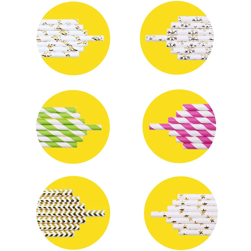Discount Price 25Pc Mix Color Foil Striped Star Dot Disposable Paper Straws For Wedding Birthday Party Christmas Drinking Straws Decor Supplies with FREE Shipping Worldwide!
