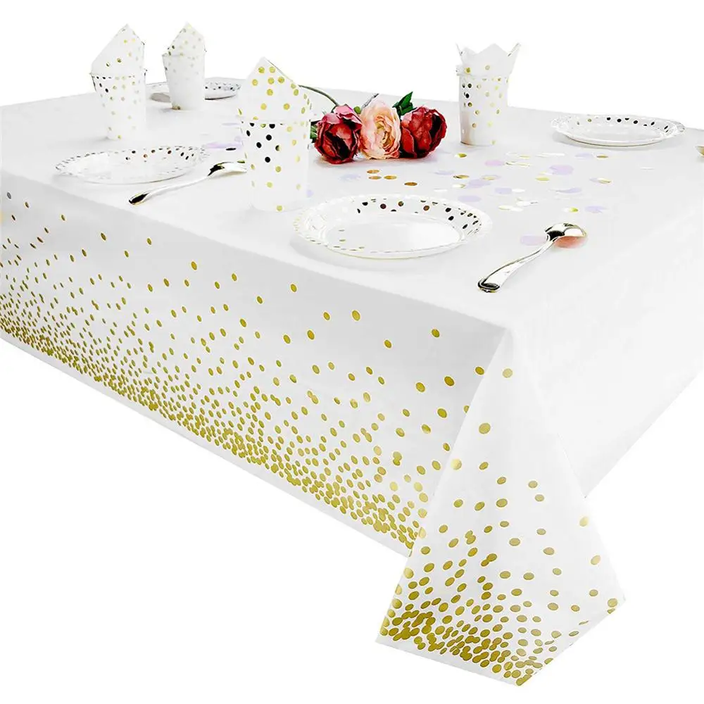 Discount Offer 3 Packs Plastic Tablecloths for Rectangle Table Party Table Cloths Disposable Gold Dot Confetti Rectangular Table Covers with FREE Worldwide Shipping!