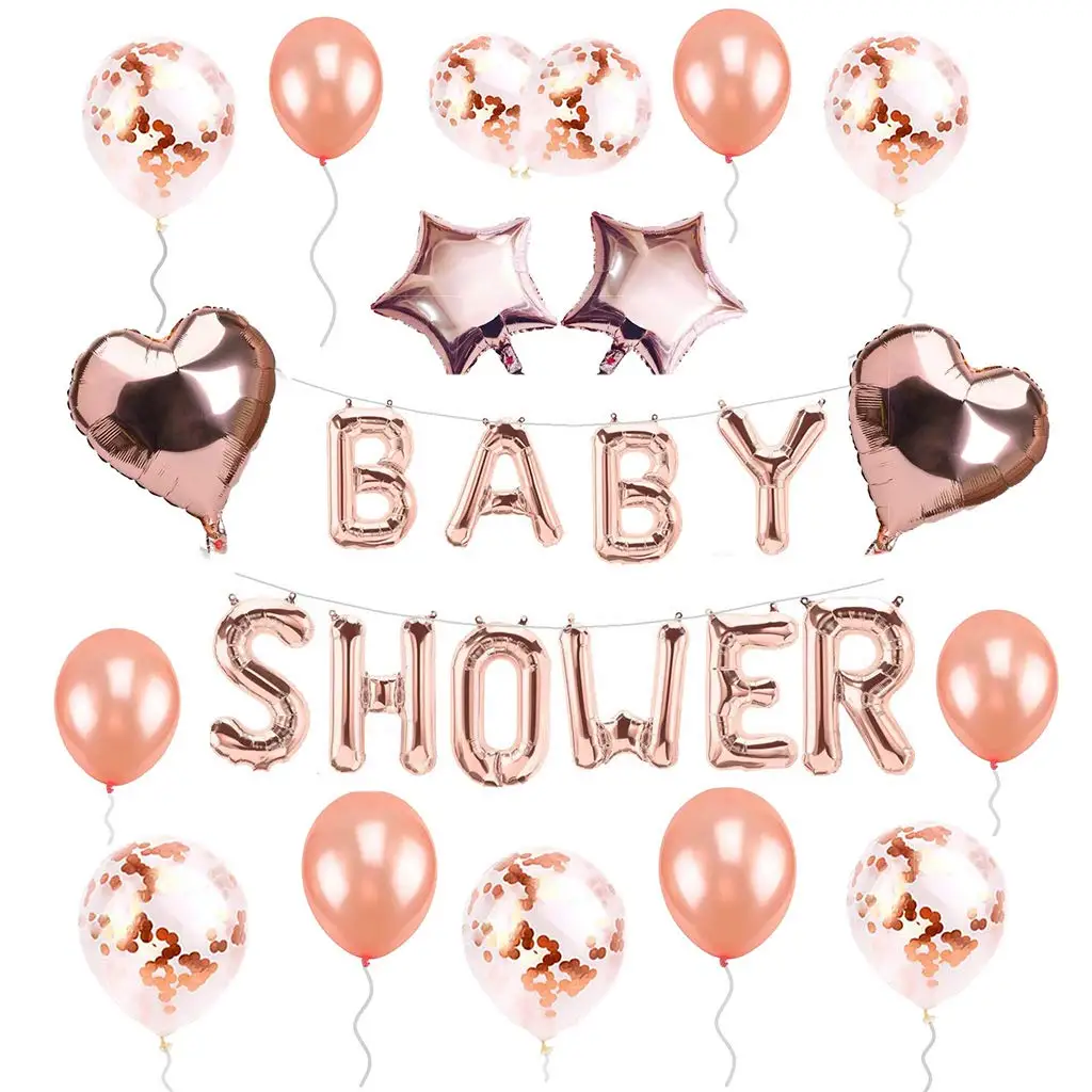 Special Offer Baby Shower Deco Balloon Rose Gold Suit for Boys and Girls with Baby Shower Banner Confetti Balloon Foil Balloons and Air Pump with Free Shipping Worldwide!