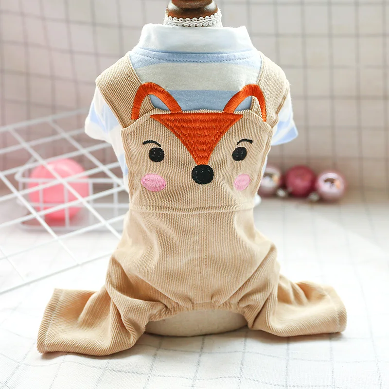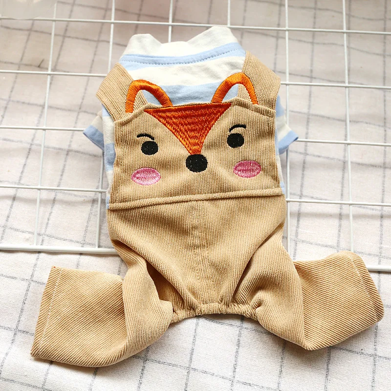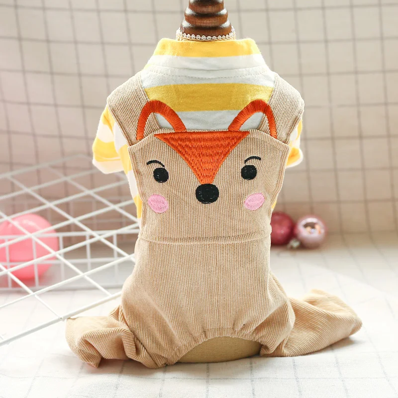 Addition Information of Fox Variant Pets Clothing Stripe Splicing Jumpsuit Spring Autumn Cotton Dog Clothes For Dogs Yorkshire Overalls Puppy Apparels