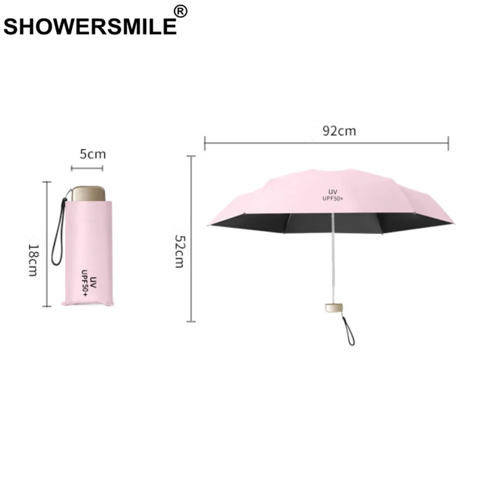 Addition Information of SHOWERSMILE Mini Folding Umbrella Smallest Pocket Size Parasol Lightweight Sun Rain Travel Solid Black Blue Pink Yellow Brolly