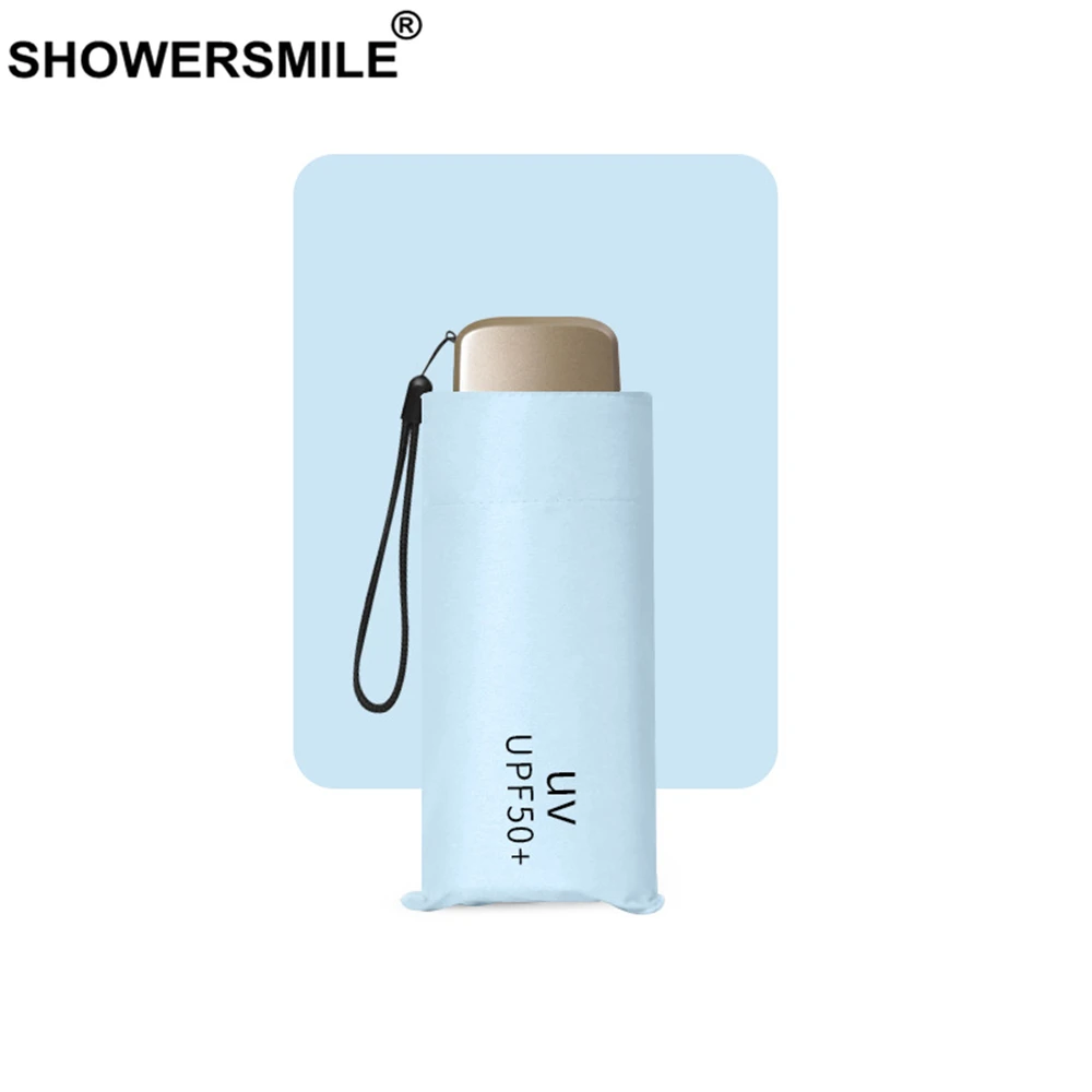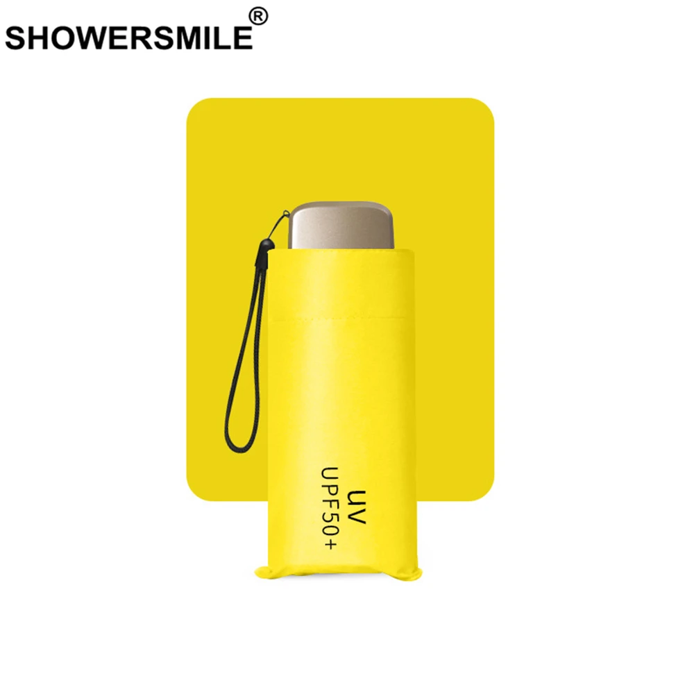Special Price SHOWERSMILE Mini Folding Umbrella Smallest Pocket Size Parasol Lightweight Sun Rain Travel Solid Black Blue Pink Yellow Brolly with Free Shipping Worldwide!