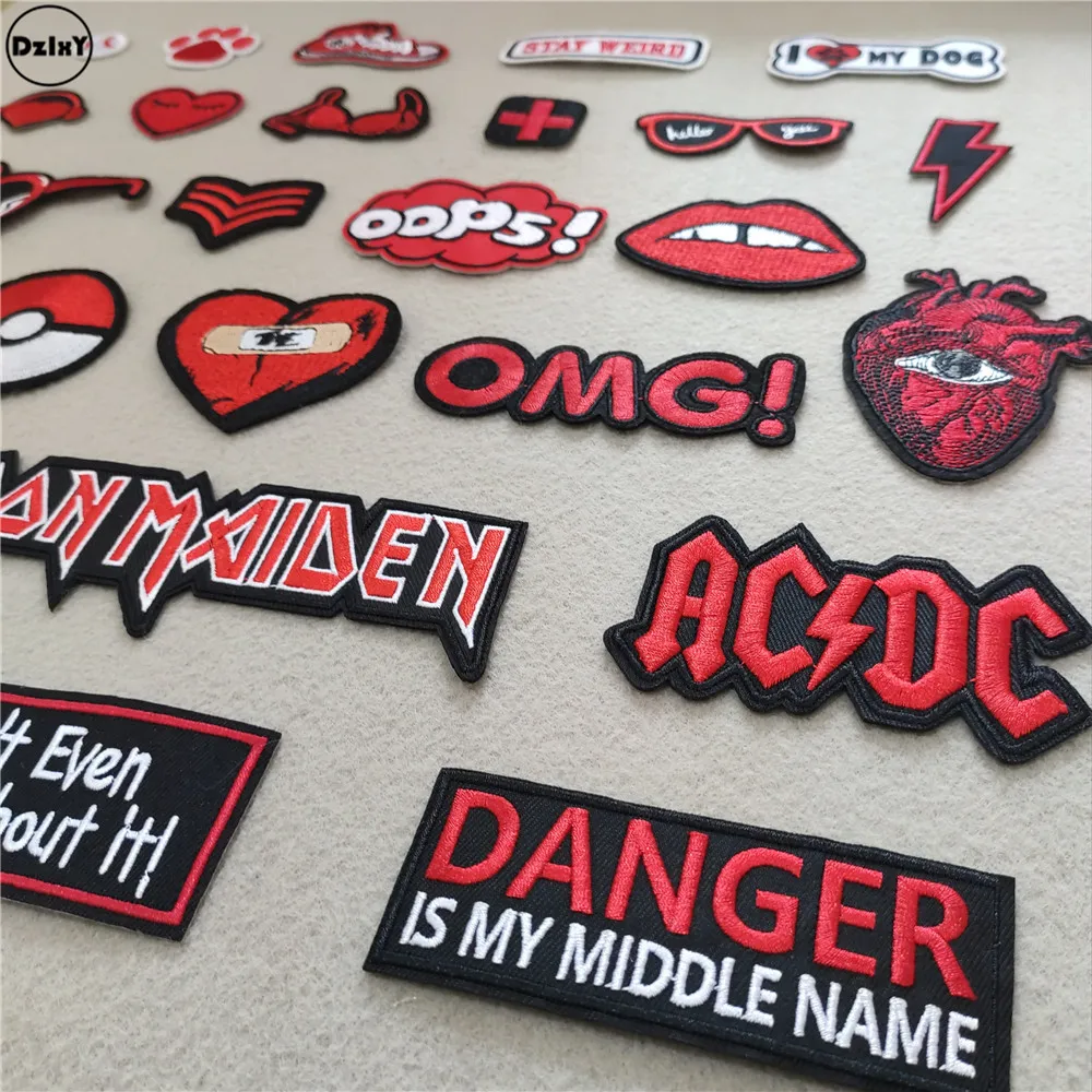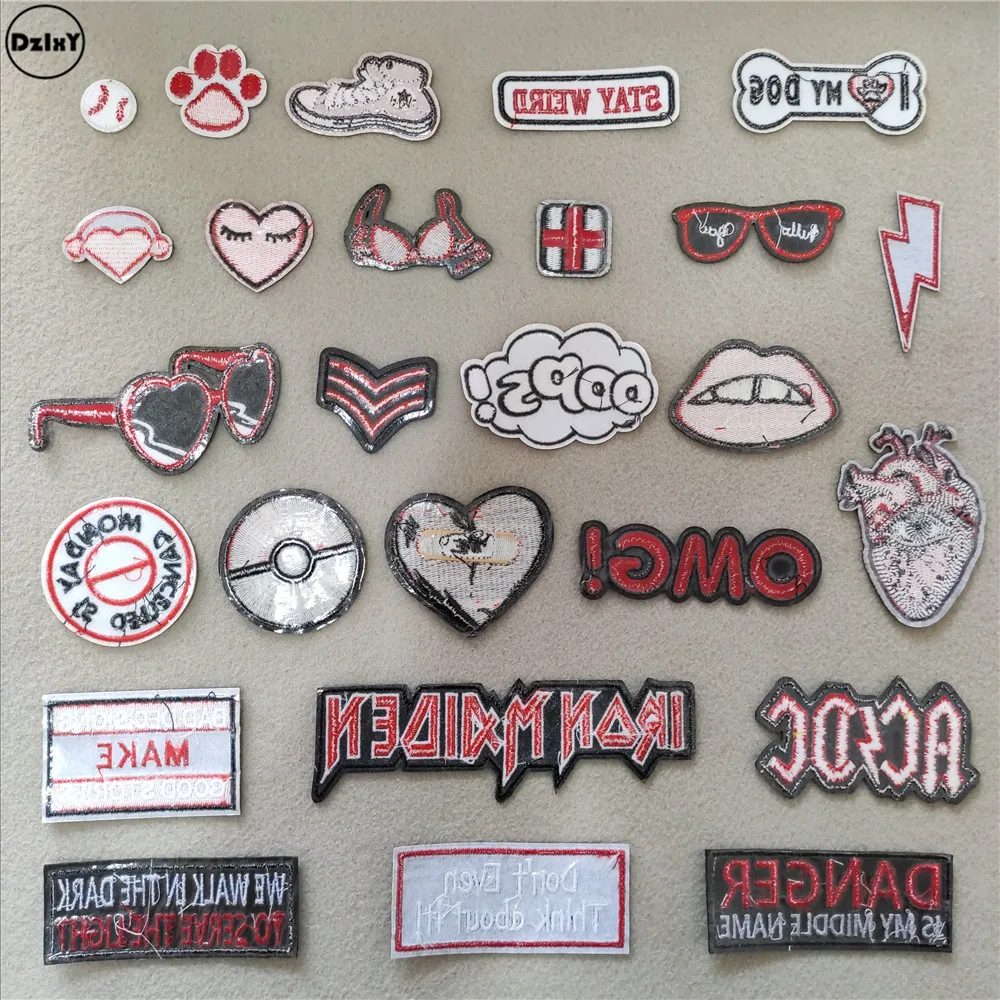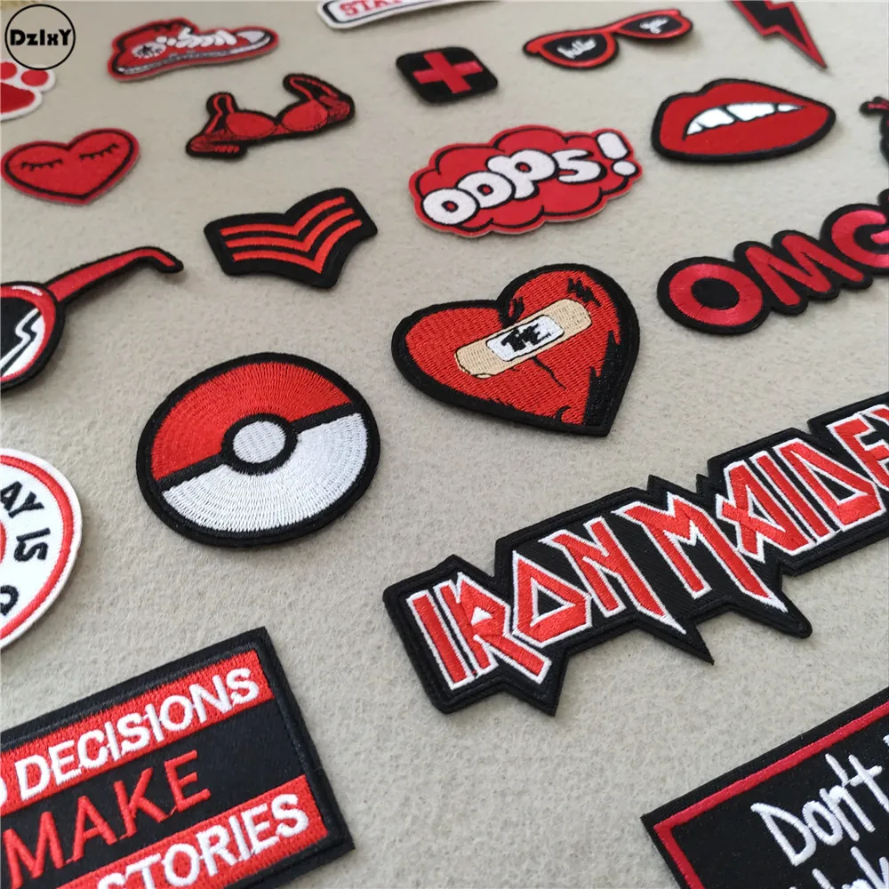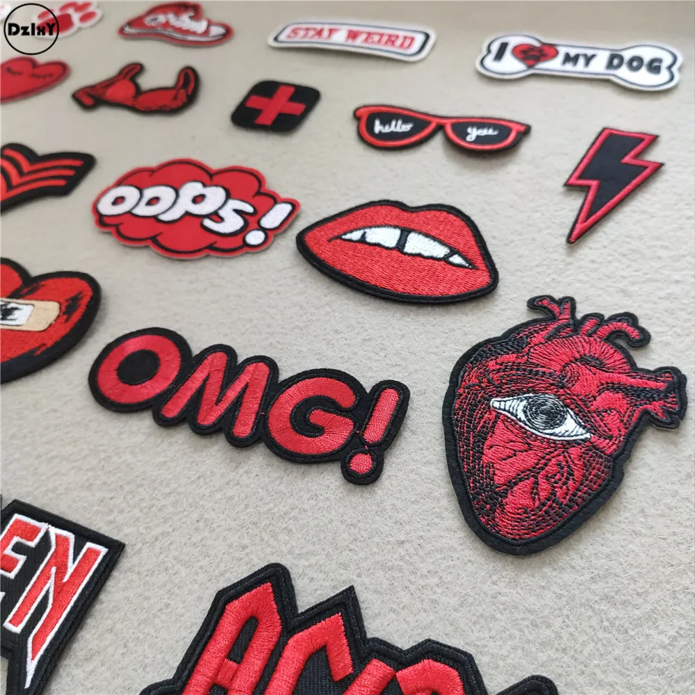 Discount Price (46 Different Styles can Choose) Red Lips Patches for Clothing Embroidered Appliques Iron on Badges Stripes Stickers on Clothes with Free Shipping Worldwide!