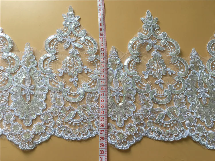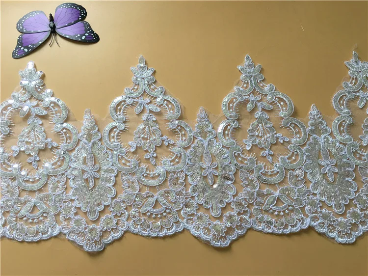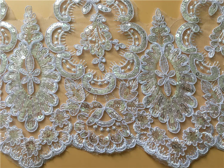 Best Offer 9Yards High Quality Sequins Beaded Alencon Lace Trim Exquisite Wedding Bridal Lace Trim DIY Apparel Craft with FREE Worldwide Shipping!